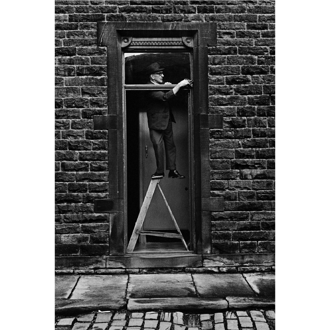 Mr Tom Greenwood cleaning, Hebden Bridge, Hangingroyd Road, West Yorkshire, England, 1975